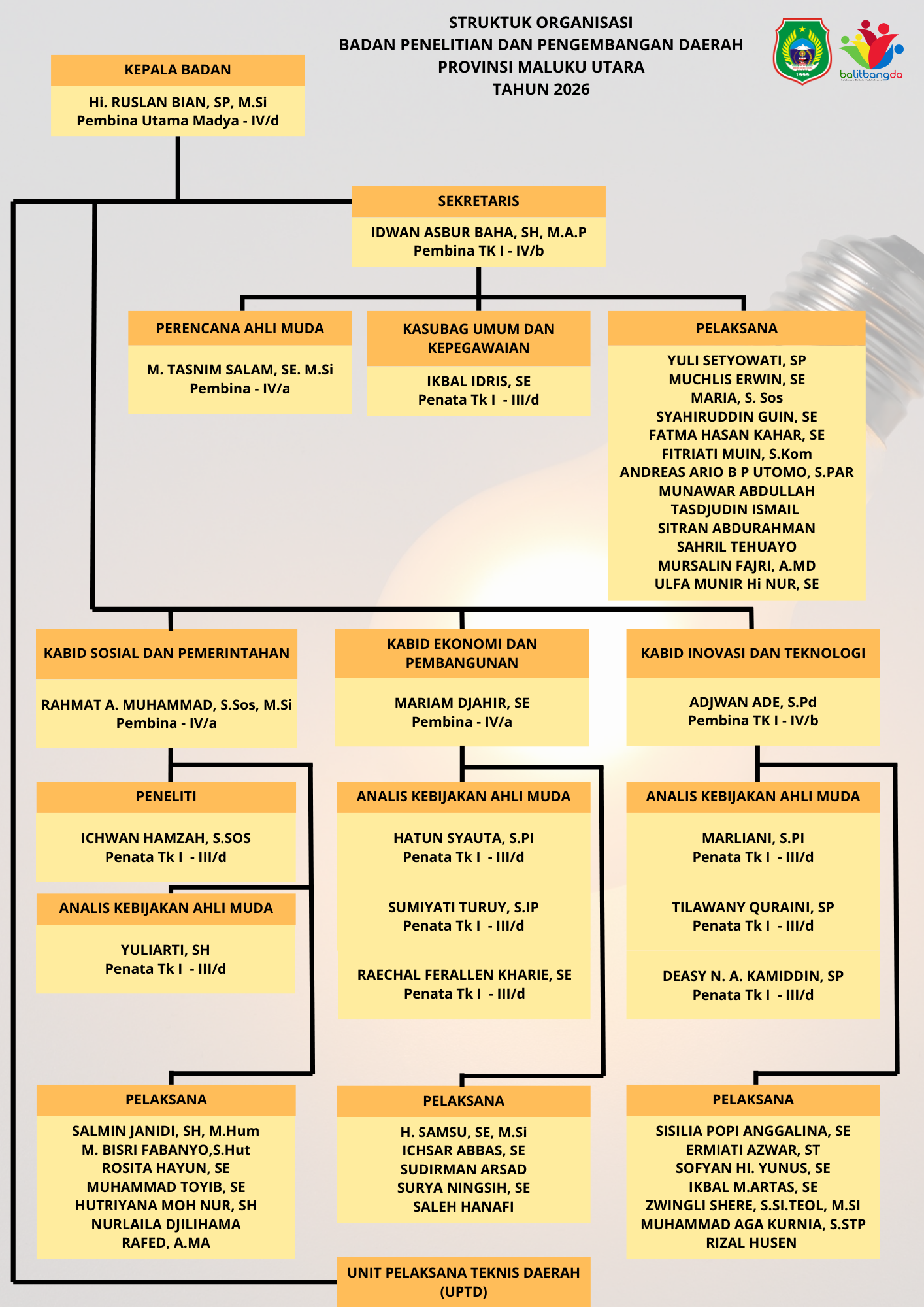 Struktur Organisasi Badan Penelitian dan Pengembangan Daerah Tahun 2026